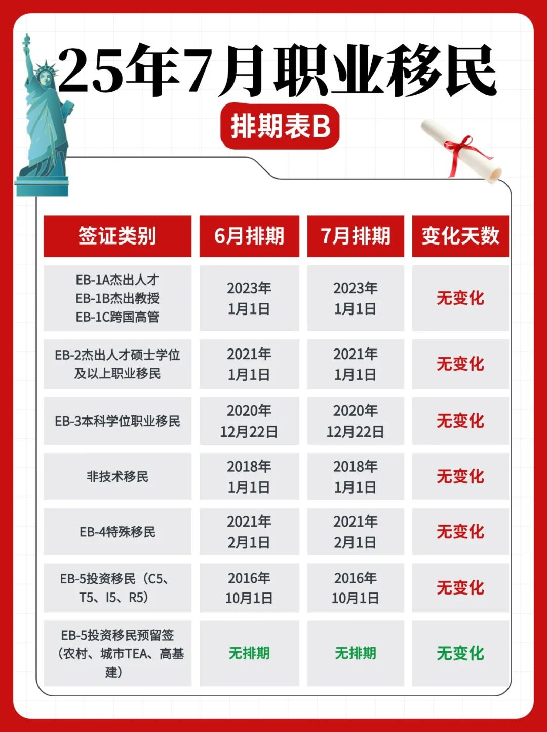 但仍需注意,7月职业移民表B依旧不能使用,只有亲属移民表B可以用!