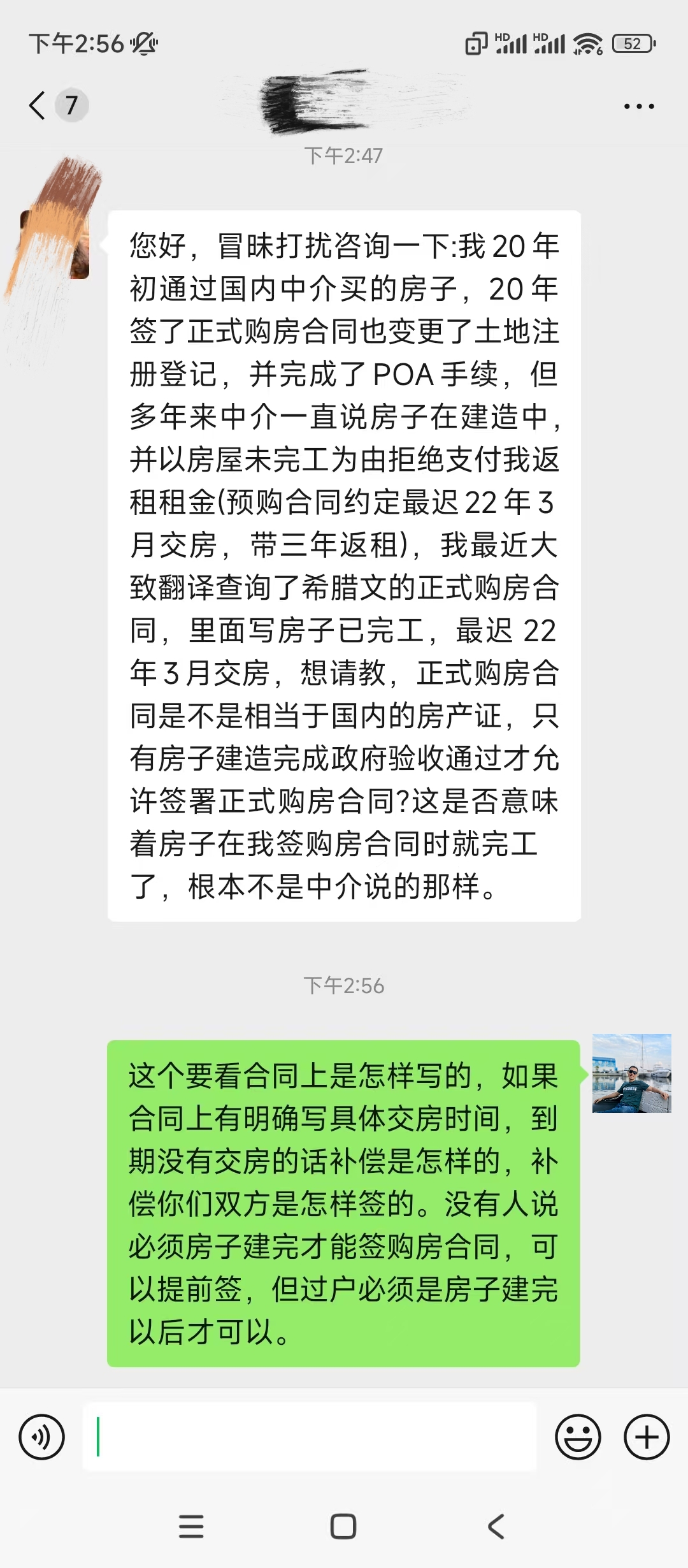 所以,当我们做希腊购房移民项目时,包括现在的商改住也一样,一定要在移民合同里把交房时间是(哪年几月几号)写清楚,日期后无法返租要怎么补偿写清楚,到时间迟迟无法交房要如何赔偿写清楚。千万别嫌麻烦,这是保护自己权益的基本操作,也能堵住他们钻空子的口子。