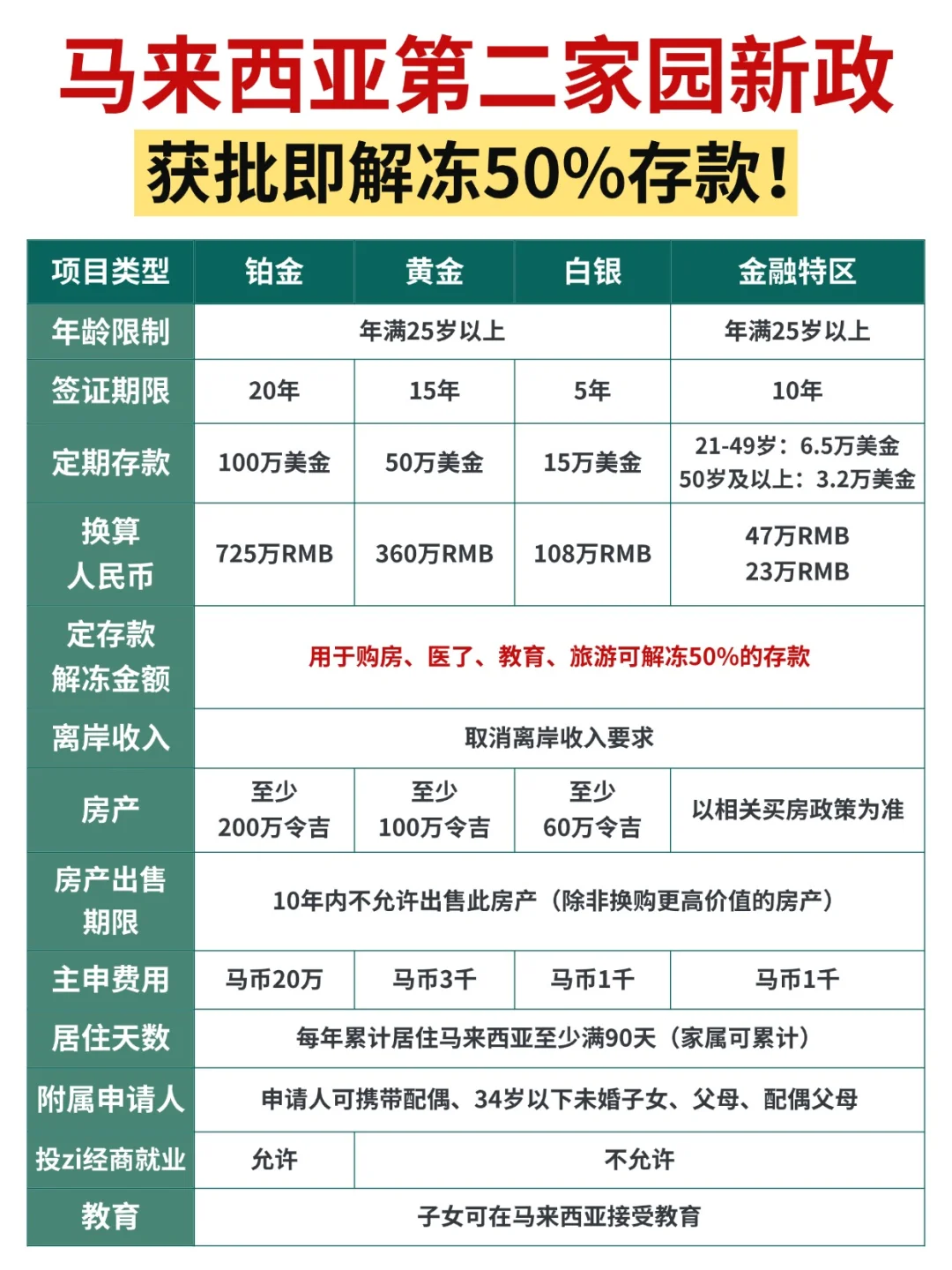 马来西亚的“第二家园计划”(MM2H),是由政府主导,面向全球人士开放的一项长期居留政策,申请门槛低,申请人只需要满足一定的存款+房产要求,即可获得5-20年的居留签证,可以携带家人一起申请。